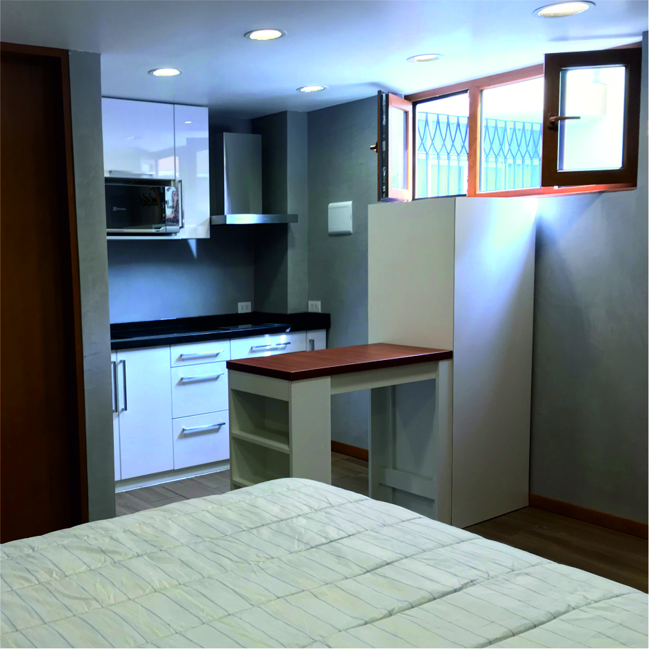 A charming 24 m2 studio featuring a private bathroom and kitchen for your exclusive use. Enjoy direct access to the main building entrance, ensuring convenience and privacy. The room is equipped with an air conditioner, providing a comfortable retreat from the summer heat of Lima.