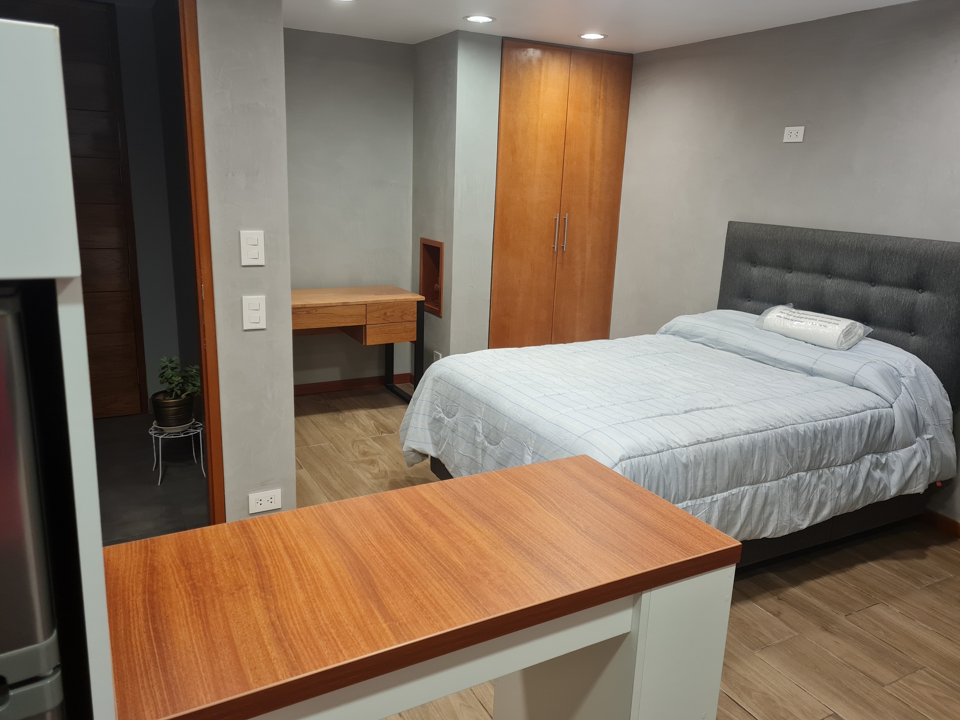 A charming 24 m2 studio featuring a private bathroom and kitchen for your exclusive use. Enjoy direct access to the main building entrance, ensuring convenience and privacy. The room is equipped with an air conditioner, providing a comfortable retreat from the summer heat of Lima.
